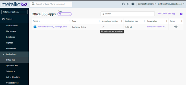 Step 2 – From the navigation pane, go to Protect > Applications > Office 365.