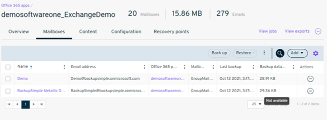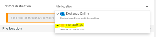 - Restore can be done to the original location/source mailbox