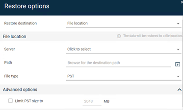 • From the Restore to list, select PST file.