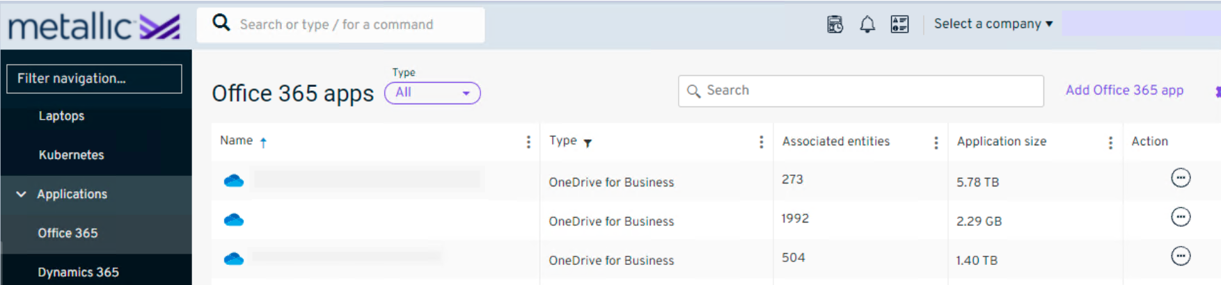 Step 2 – From the navigation pane, go to Protect > Applications > Office 365. The Office 365 apps page appears.