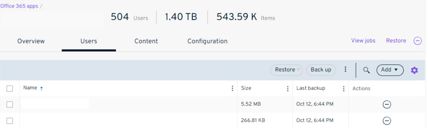 Step 3 – Click the app that contains the user. The app page appears. Below mentioned are type of the restoration options available.