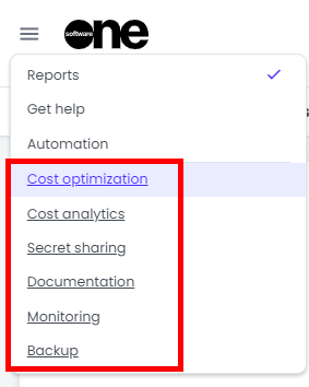 Click on Cost optimization in our Hamburger menu to access to GorillaStack, a SoftwareOne product which has extensive features to save money in your environment.